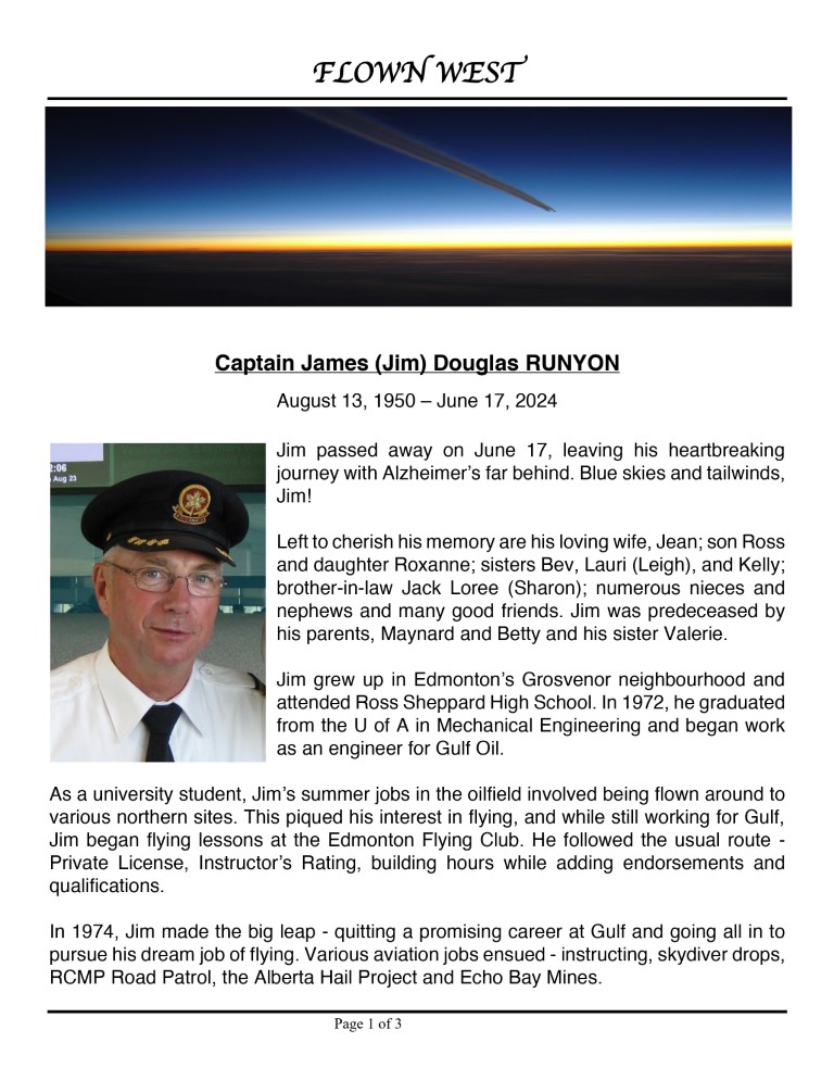 born in Edmonton in 1946 and was an avid pilot from his first flight at age